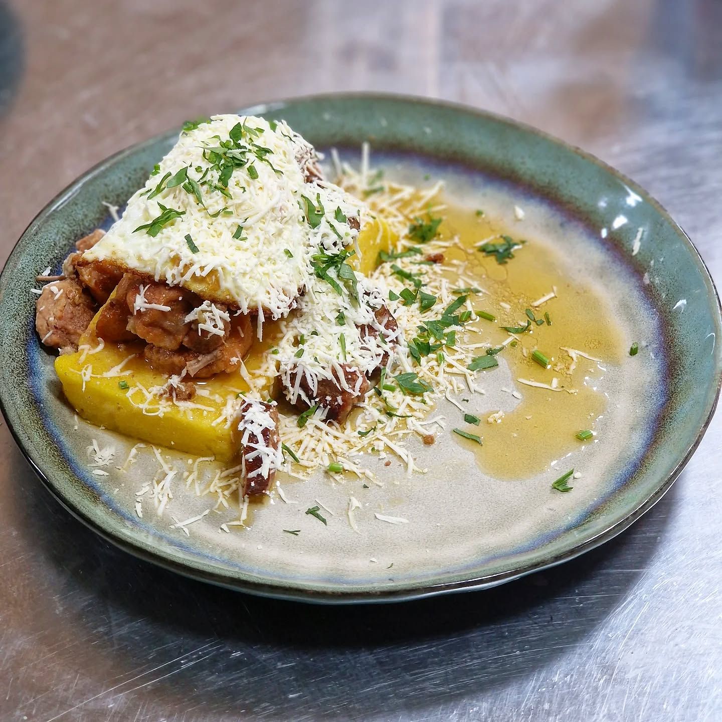 (carne de pui, făină de mălai, ceapă, ardei gras, usturoi, smântână)